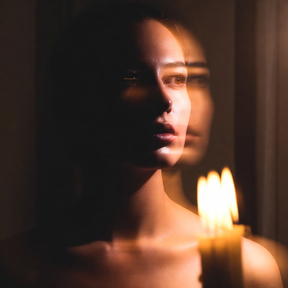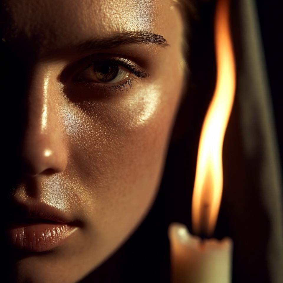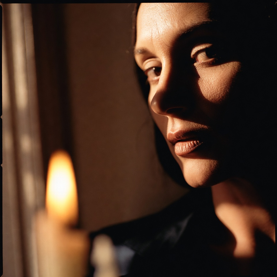 To keep candlelight from turning “romantic,” the key is contrast discipline: emphasize shadow density, keep fill light minimal, and let the flame motivate the highlight direction.