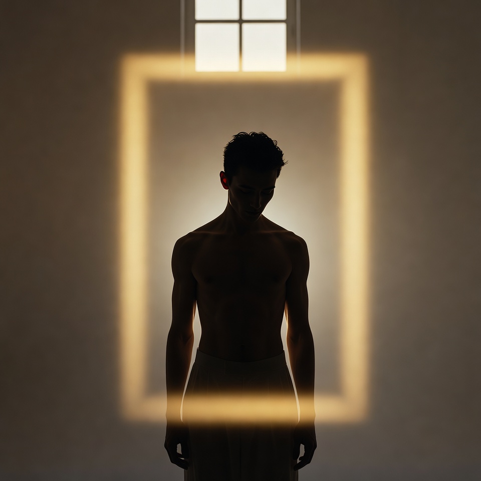 - Edges ignite (hair, shoulders, jawline), carving the silhouette from the background.