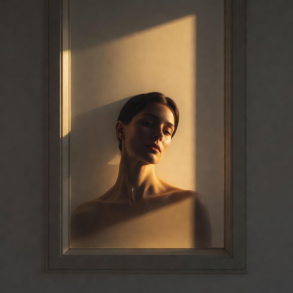 - Pose: slight turn away from camera, shoulders relaxed, chin subtly lowered.