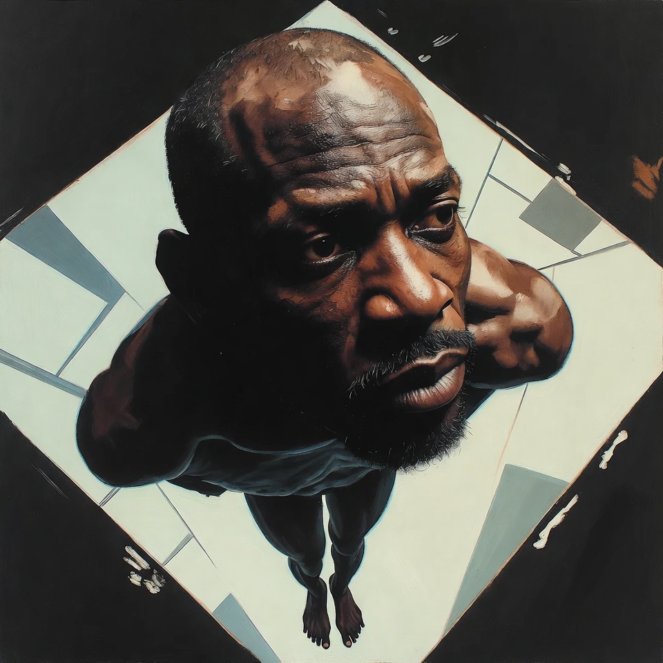 A High Angle viewpoint subtly de-centers the subject’s dominance, creating an observational, almost archival quality like you’re studying a future icon through a curator’s lens. With Triangle Composition, the portrait gains structural authority: a stable geometric scaffold that prevents painterly softness from turning vague, and gives futurism a sense of engineered intent.