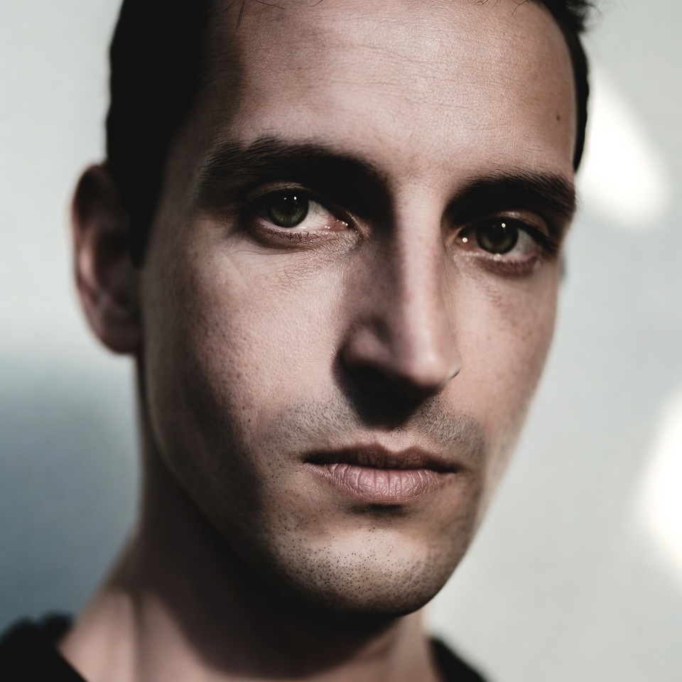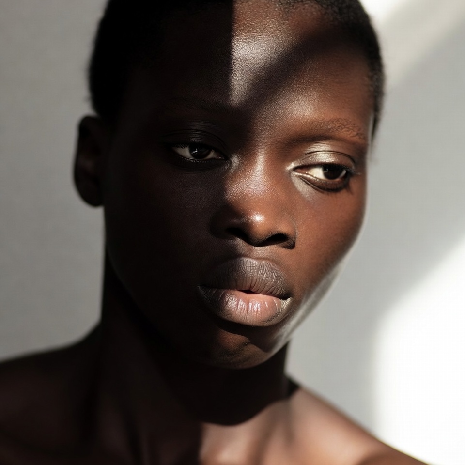 This specific combination is exceptionally effective for a Melancholic mood because diffusion removes the violence of light. Instead of sharp transitions (which read as energetic or confrontational), softbox light produces smooth tonal roll-off across cheeks, brow, and jawline an optical whisper. At Eye-Level, the viewer meets the subject without dominance or submission, creating emotional parity. The result is intimate, contemplative, and human melancholy without melodrama.