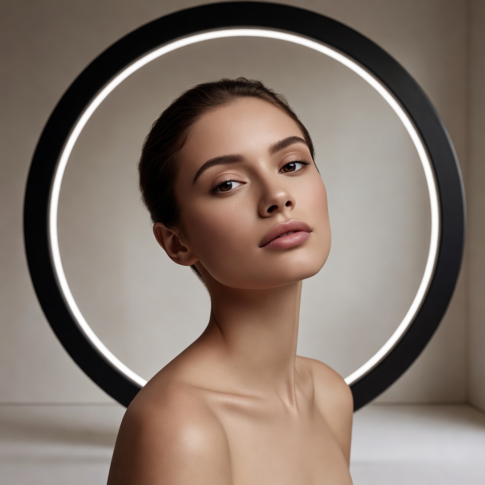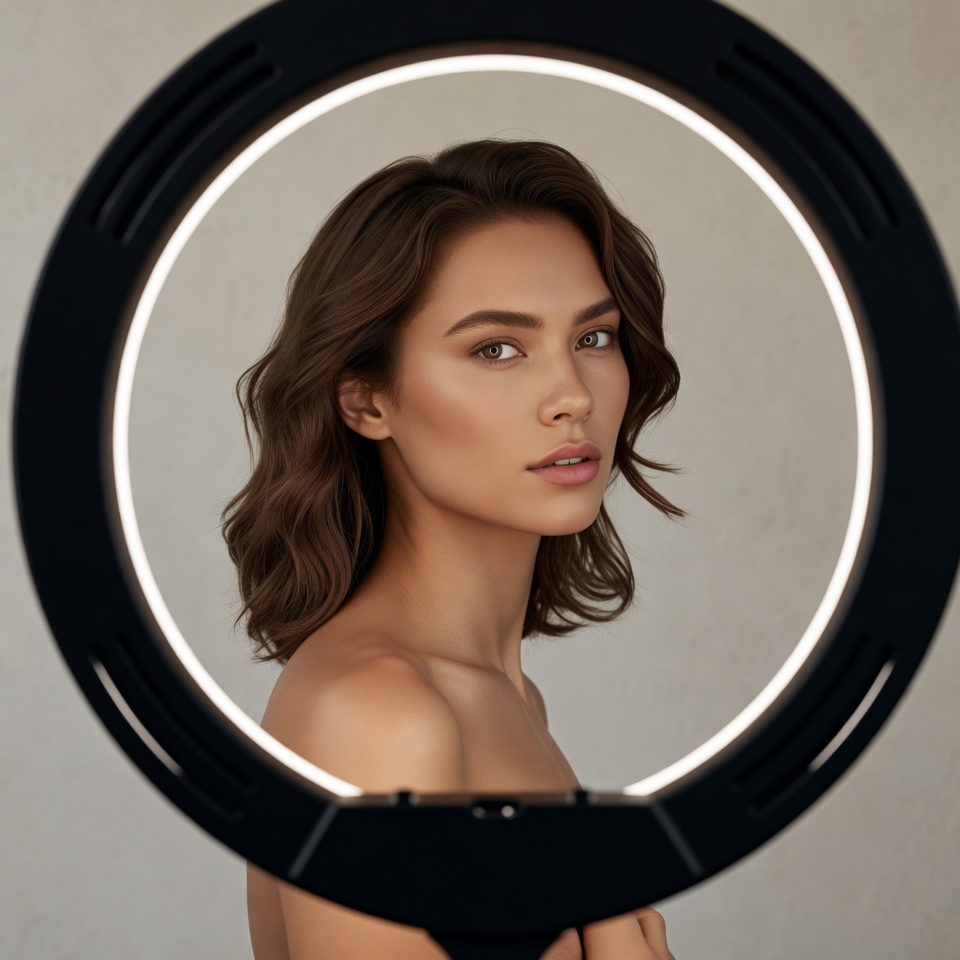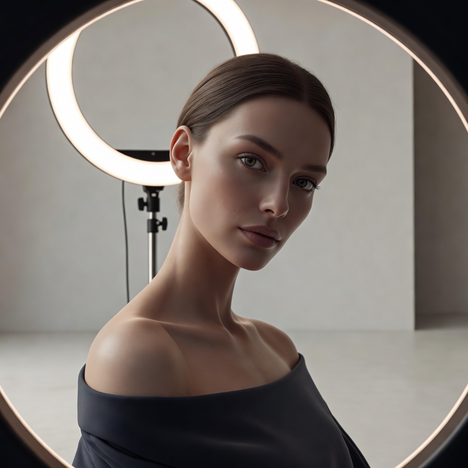 What to watch: Ring lights can over-flatten facial structure. To preserve professional sculpting, your best outputs will imply a slight off-axis bias or subtle negative fill (dark flag) so cheekbones don’t disappear into uniform glow.