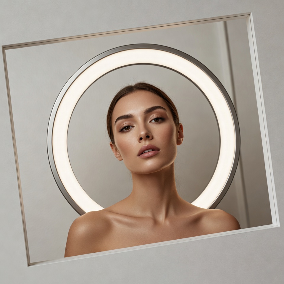 • a mirror edge (vanity mirror / circular mirror echoing the ring light),