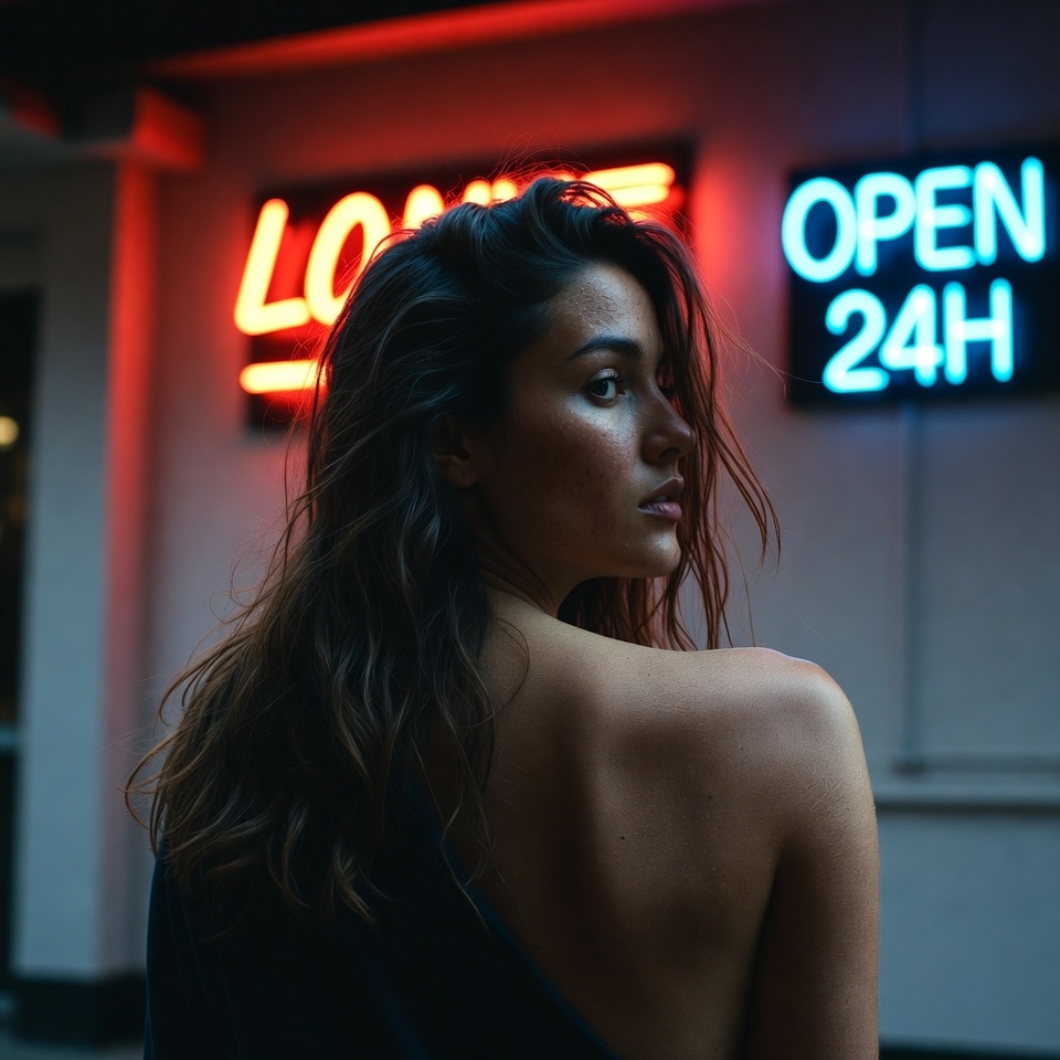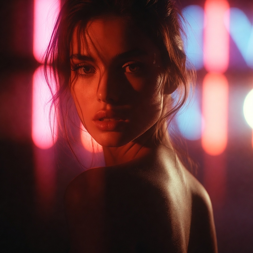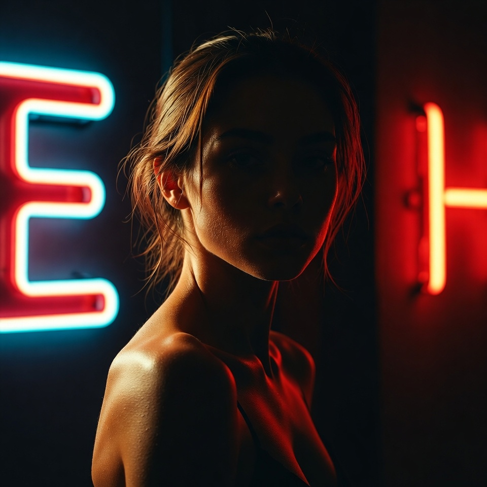 - Directional spill: neon often behaves like a lateral key + ambient fill, wrapping edges and creating soft gradients across shoulders and hair.
