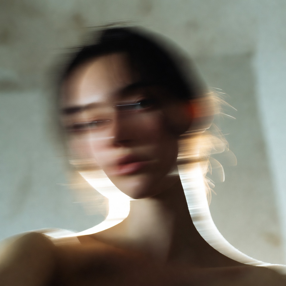 Motion Blur is emotion made physical: time smearing across the frame like a thought you can’t hold still. When you pair that with a rim light (backlight), the subject becomes a glowing outline against the dark almost spectral while the interior detail fades into softness. That’s melancholic language in pure optics: presence at the edges, absence in the middle.