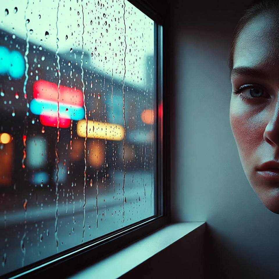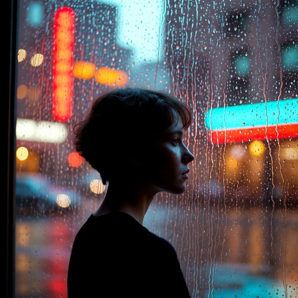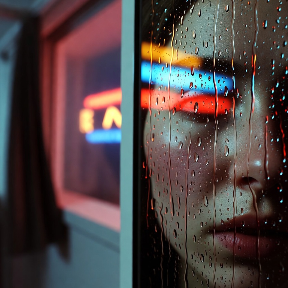 - Expanded context: you can include window frame geometry, raindrop field, and neon reflections as compositional elements.
